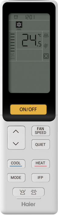 Схема распределения воздушного потока предполагает четырехстороннюю подачу воздуха в помещение. Возврат воздуха осуществляется из центральной решетки. Стандартно кассетные внутренние блоки Haier укомплектованы ИК-пультами дистанционного управления, которые имеют информативную панель индикации, удобные клавиши управления. Кондиционер заправлен хладагентом нового поколения R32.