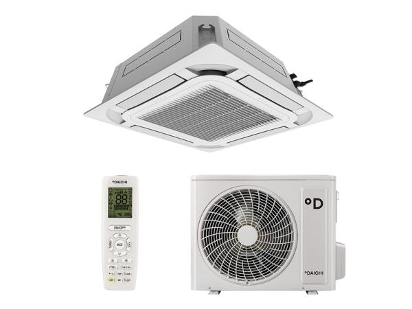 Сплит-система кассетного типа Daichi в компактном исполнении — идеальное решение для коммерческих помещений благодаря компактным габаритам, которые позволяют осуществить монтаж внутреннего блока в стандартную ячейку подвесного потолка размером 600×600 мм. Встроенный дренажный насос обеспечит отведение конденсата на высоту до 1100 мм, а надежный компрессор наружного блока обеспечивает стабильную работу при наружной температуре до -15 °С.