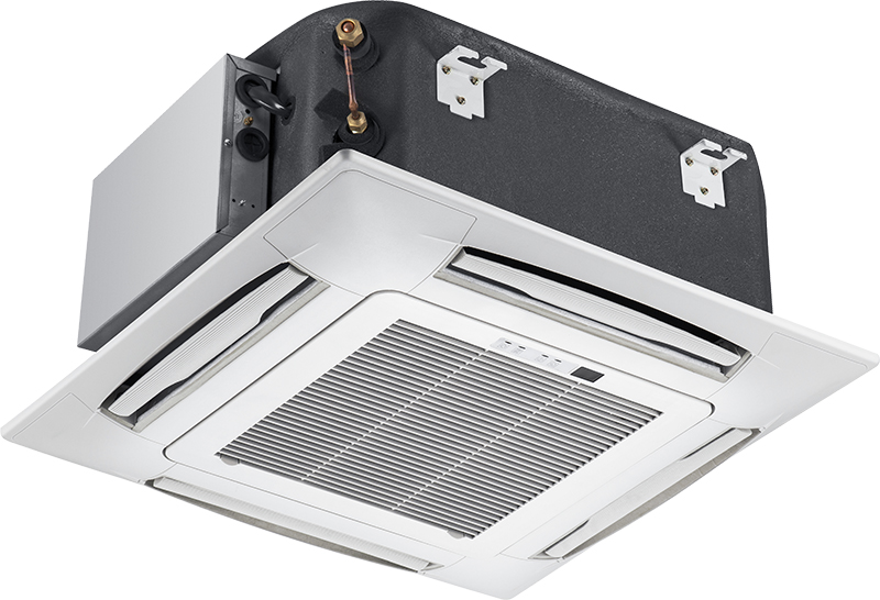 Подвесные потолки типа Армстронг, в полноразмерных внутренних блоках используется панель с распределением воздуха на 360 градусов, а также встроенным дисплеем отображающим заданную температуру.