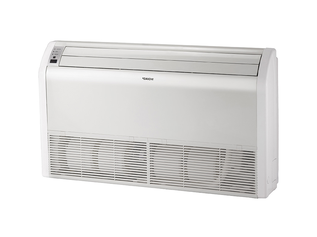 Внутренние блоки напольно-потолочного типа Daichi с протяженным воздушным потоком по принципу эффекта Коанда и автоматическим качанием горизонтальной заслонки.