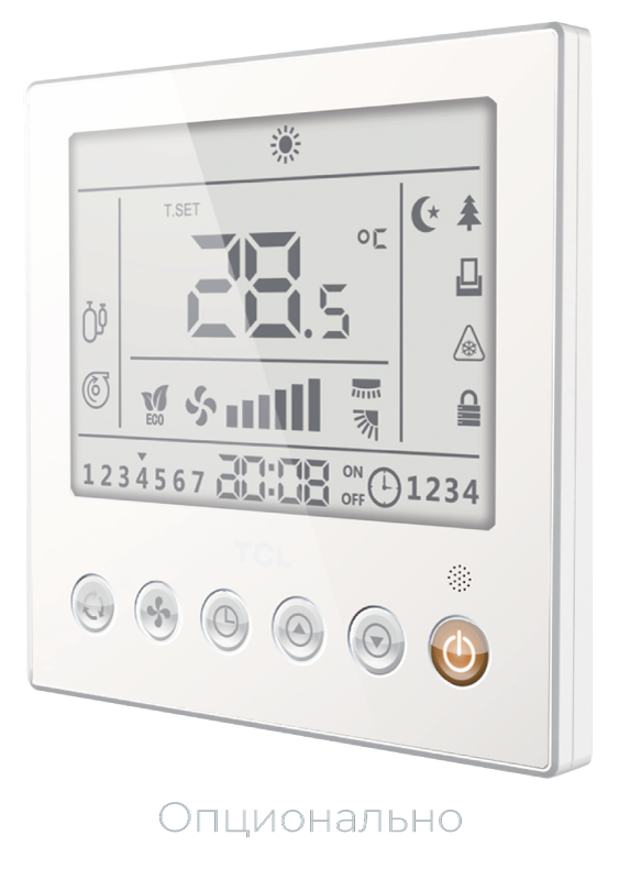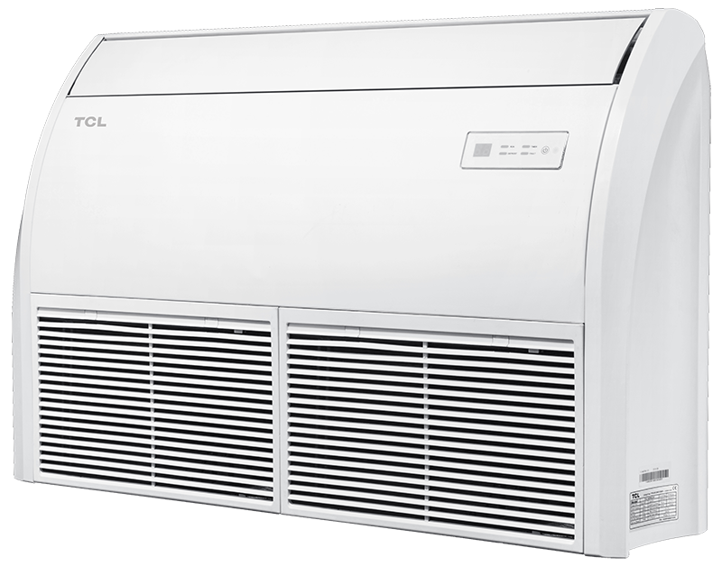 Напольно-потолочные кондиционеры TCL TUB – оснащаются универсальным внутренним блоком, который можно устанавливать, как в вертикальном, так и в горизонтальном положении. Такая универсальность дает возможность использовать данный тип кондиционеров практически в любом помещении. Воздухообмен и длина воздушной струи блоков данного типа существенно превосходят характеристики настенных кондиционеров, поэтому они наиболее востребованы в коммерческом сегменте рынка и чаще применяются в качестве систем кондиционирования для торговых павильонов, магазинов, кафе, ресторанов и других помещений большого объема с высокой тепловой нагрузкой. Автоматические вертикальные и горизонтальные жалюзи позволяют направить воздух в самые удаленные уголки помещения, при включении функции автоматического качения, воздух будет распределятся равномерно по всему помещению, что позволит избежать образования мест локального скопления горячего воздуха. Единая толщина блока, всего 235 мм для всех моделей в рамках линейки, позволяет сочетать модели различной мощности для установки в одном помещении, не нарушая визуального восприятия установленных кондиционеров. Красивый и лаконичный дисплей отображает режим работы кондиционера, а также показывает поддерживаемую температуру. Имеется возможность подключения проводного настенного пульта управления.