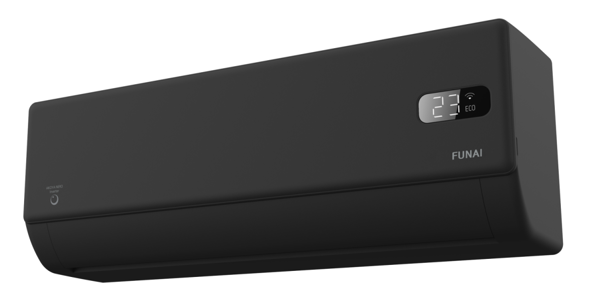 Funai AKOYA NERO Inverter серия инверторных кондиционеров, имеющих эргономичную конструкцию, черный внутренний блок и все необходимые функции для современного бытового кондиционера.