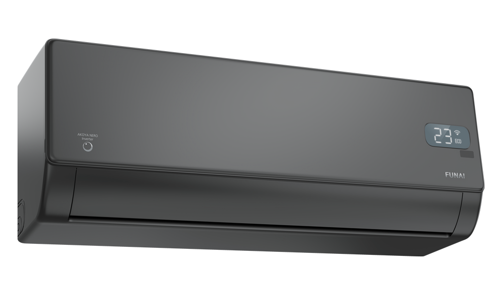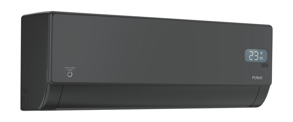 Funai AKOYA NERO Inverter серия инверторных кондиционеров, имеющих эргономичную конструкцию, черный внутренний блок и все необходимые функции для современного бытового кондиционера.