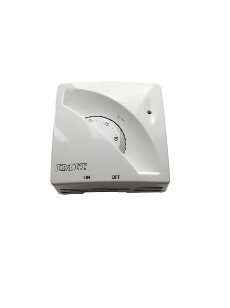 Механический комнатный термостат относится к устройствам двухпоцизионного регулирования температуры воздуха в помещениях различного типа (жилых, офисных, производственных и др.). Термостат итальянской компании IMIT серии TA3n характеризуется простотой использования, компактными размерами, точностью контроля температуры и срабатывания контактов реле. К другим преимуществам термостатов IMIT TA3 относятся широкий диапазон измеряемых температур, небольшой шаг регулировки температуры и оперативная работа устройства. На корпусе термостата расположены кнопка включения устройства, предупредительный индикатор и ручка установки температуры.