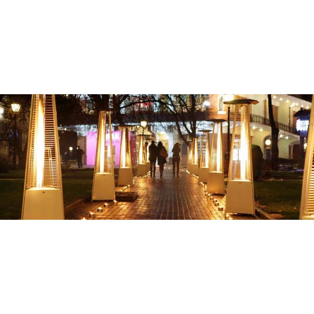 Уличный газовый инфракрасный обогреватель 08HW-BW. Корпус и высокая мощность обуславливают специфические сферы эксплуатации обогревателя: украшение входных групп, освещение и обогрев веранд и открытых участков, декор и обогрев в зимних шатрах, применение в больших залах и использование, как источника мягкого и красивого пламени. Прибор имеет многоуровневую систему безопасности: защита от опрокидывания, перегрева и защита от потухшего пламени. Электроподжиг и плавная регулировка пламени, гарантируют комфортную эксплуатацию обогревателя.