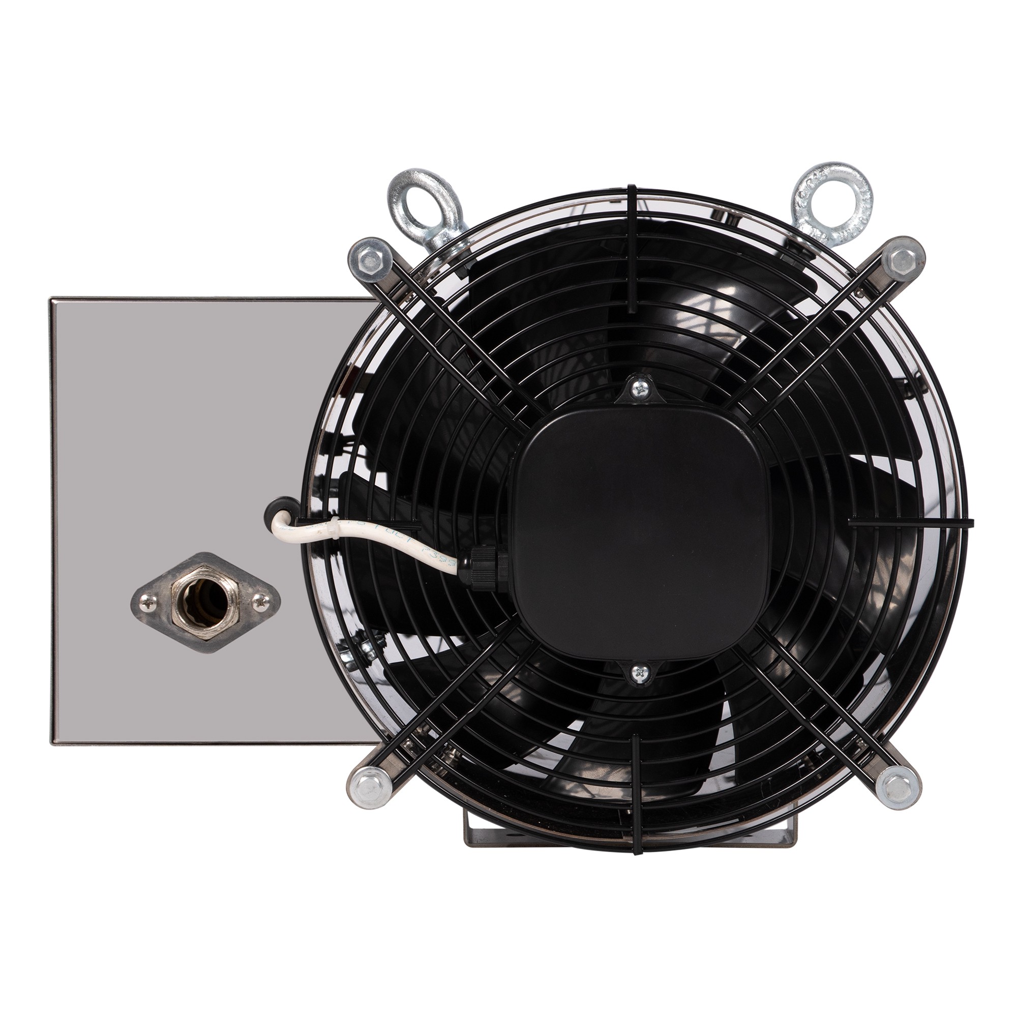 Прочная конструкция теплогенератора из нержавеющей стали надежно защищает даже при использовании агрегата во влажных помещениях, а также позволяет производить чистку установленного прибора напором воды. Благодаря специальному переключателю можно менять режимы работы: нагрев и вентиляция.