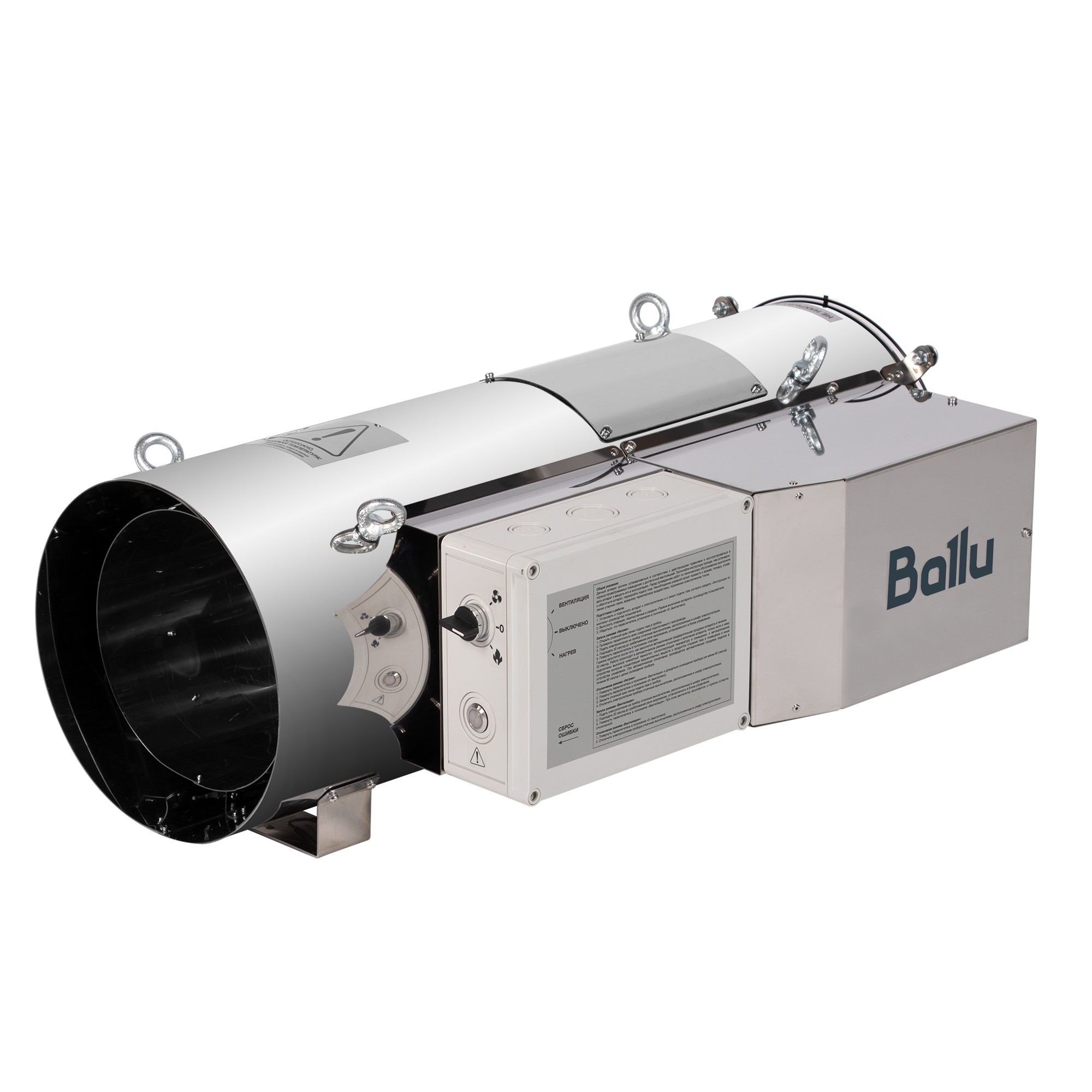 Подвесной газовый теплогенератор Ballu PRO BSG-45 – это мощный профессиональный воздухонагреватель, работающий на природном газе (метане). Прибор имеет тепловую мощность 33 кВт и предназначен для безопасного и эффективного отопления помещений для хранения и сортировки сельскохозяйственной продукции, цехов и т.п.