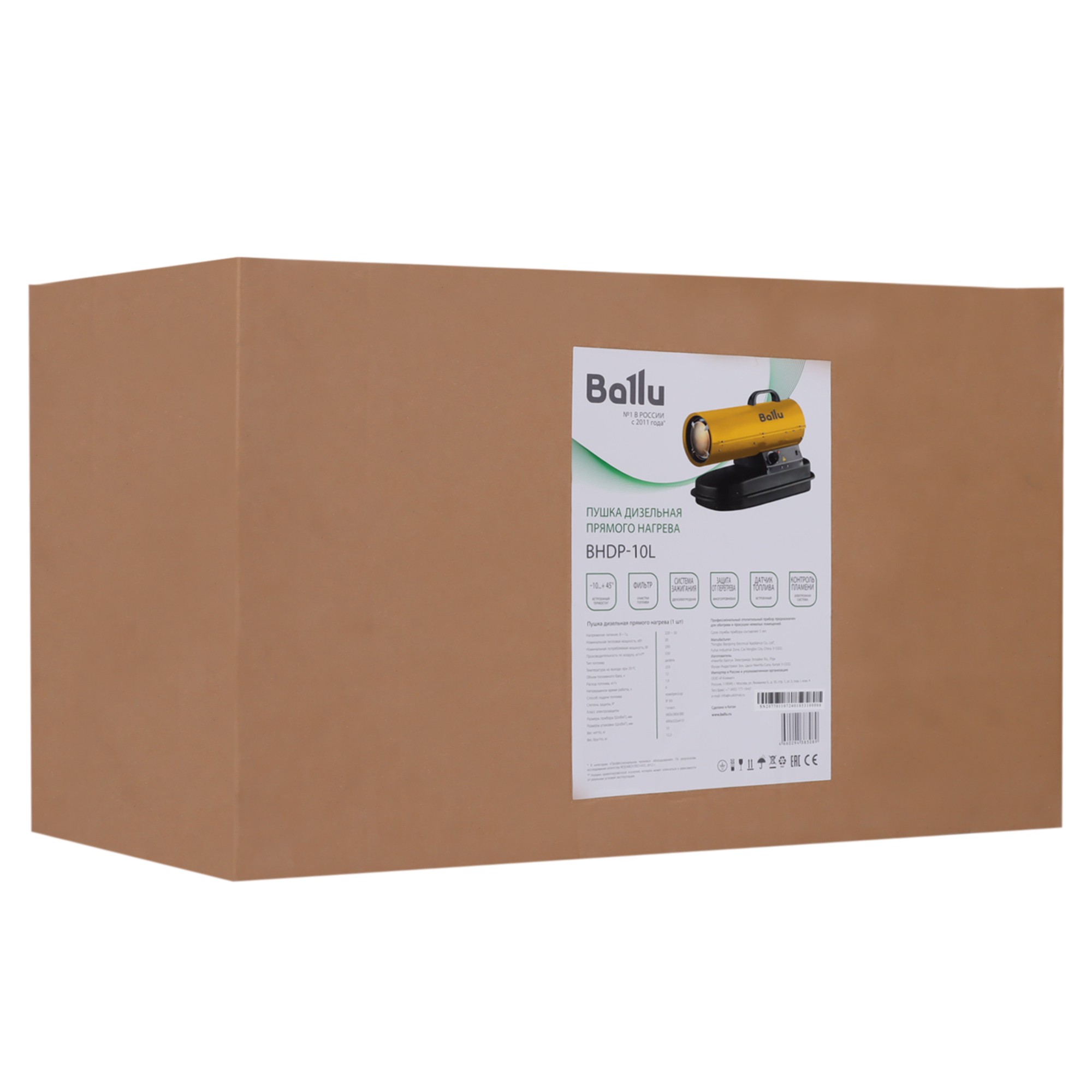 Тепловая пушка Ballu BHDP-10L работающая на дизельном топливе предназначена для обогрева нежилых помещений и локального прогрева рабочих поверхностей. Высокий уровень КПД прибора около 100%, а тепловая мощность 10 кВт, производимая тепловой пушкой – вполне достаточна для использования устройства в качестве мощного генератора тепла.