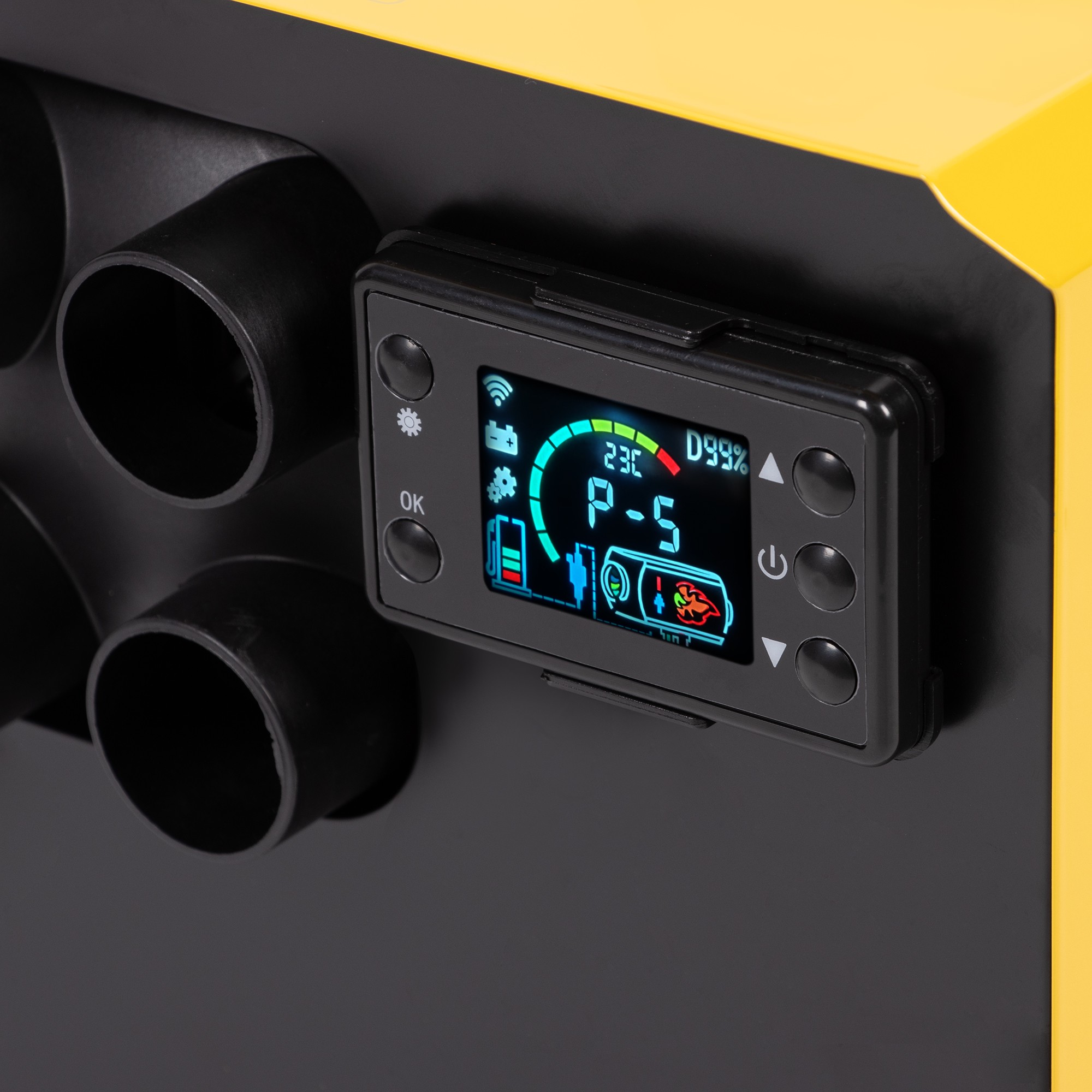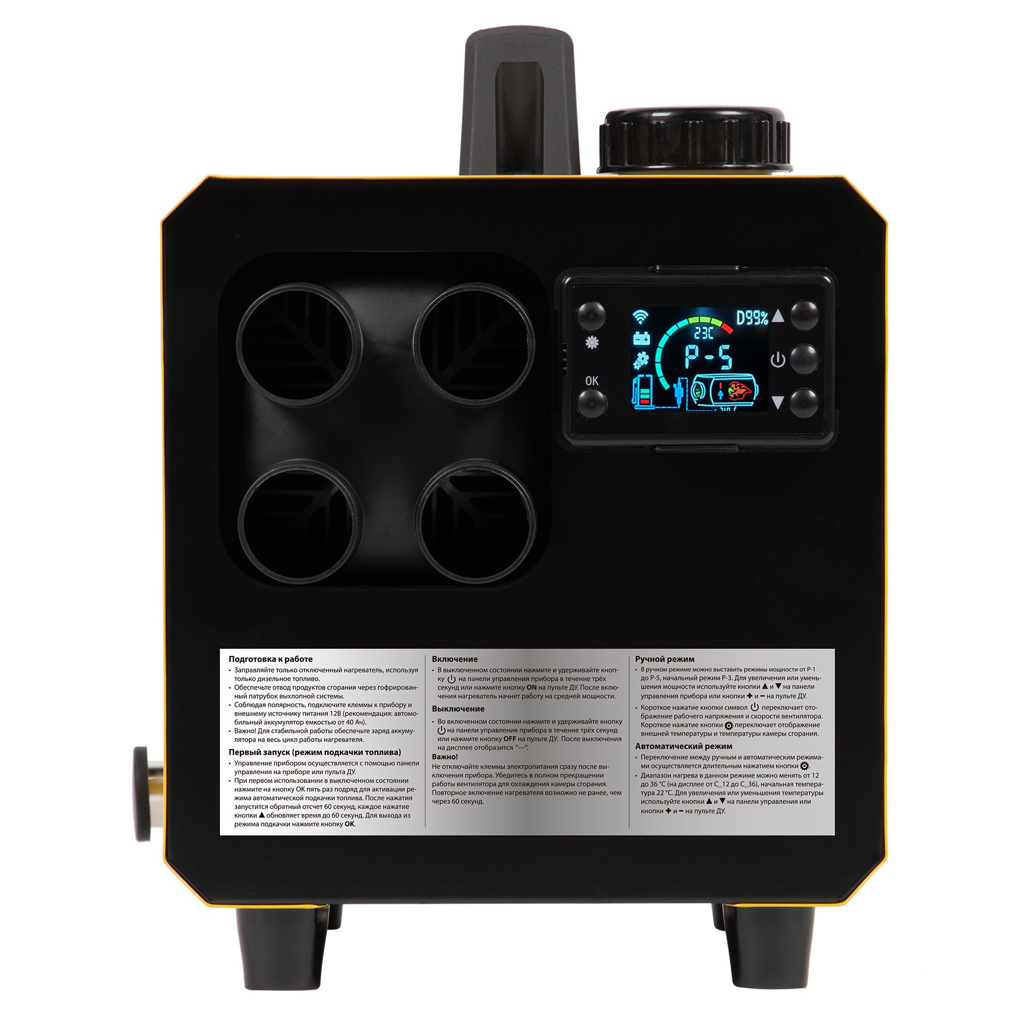 - Дистанционное управление — включение/выключение пушки и регулировка температуры с помощью пульта ДУ