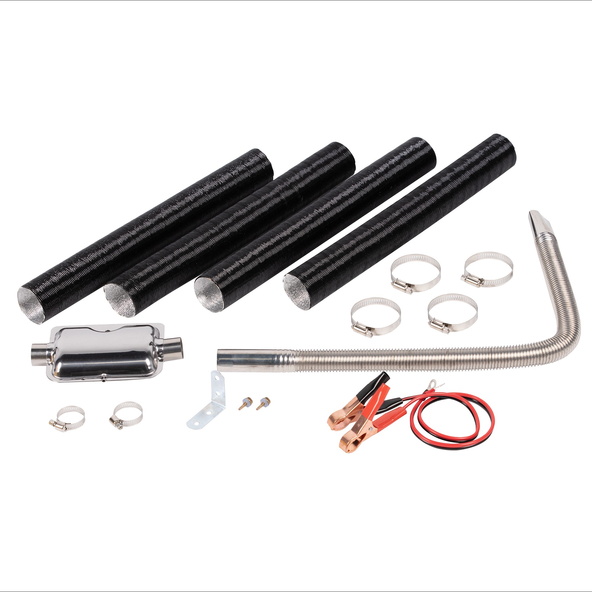 - Самая полная комплектация (провода для подключения к аккумулятору, труба дымохода, гофротрубы 4 шт., хомуты, глушитель)