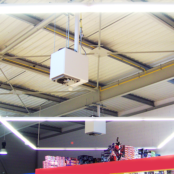 • Осевой вентилятор, двойные жалюзи или специальная насадка – дестратификатор