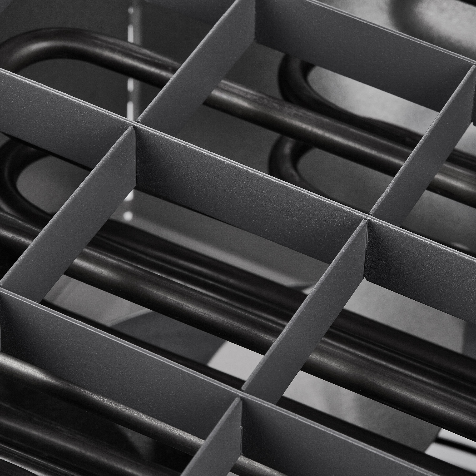 Новая конструкция передней решетки позволяет равномерно распределять выходящий поток воздуха. Прочное термостойкое полимерное покрытие корпуса обеспечивает надежную защиту от коррозии. Тепловентиляторы имеют встроенную систему защиты от перегрева.