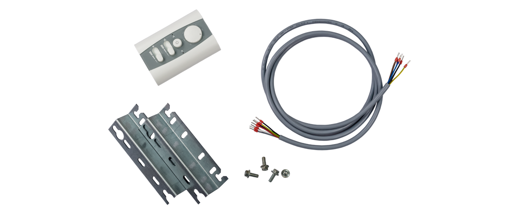 Стандартная комплектация включает монтажные кронштейны, пульт и кабель подключения. Дополнительно можно приобрести датчик открывания двери, смесительные узлы, а также подключить концевые выключатели и различные датчики (присутствия, движения, температуры).