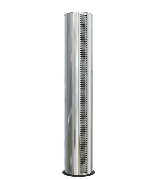 Воздух в прямоточной завесе проходит сквозь колонну в диаметральном направлении. Всасывание расположено на тыльной стороне корпуса. Защитная нагретая струя выходит через переднюю сопловую перфорацию.