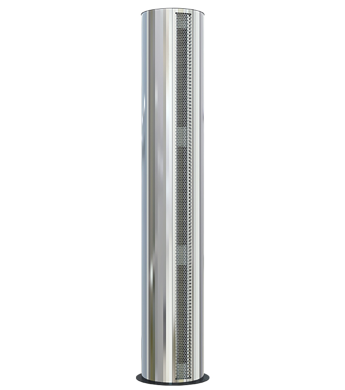 Воздух в прямоточной завесе проходит сквозь колонну в диаметральном направлении. Всасывание расположено на тыльной стороне корпуса. Защитная нагретая струя выходит через переднюю сопловую перфорацию.