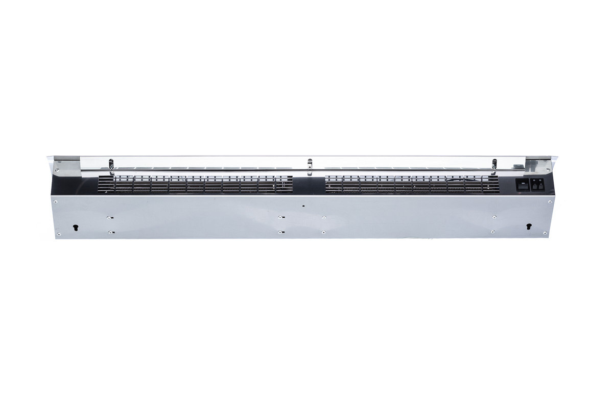 Клавиши управления расположены на корпусе. Имеет 1 скорость вентилятора и 3 степени нагрева. В качестве нагревателя используется безынерционный стич-элемент. Монтаж воздушной завесы горизонтальный.