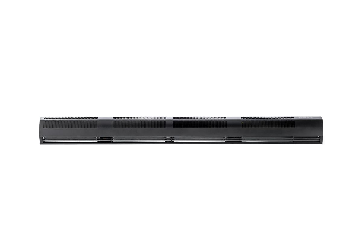 Вместо ТЭНов используются безынерционные стич-элементы, позволяющие за короткий промежуток времени вывести завесу в рабочий режим. В комплекте с тепловой завесой поставляется выносной пульт с терморегулятором, позволяющий регулировать 3 скорости и 3 степени нагрева.