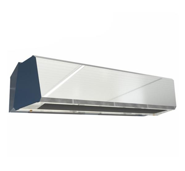 Воздушная завеса прогоняет воздух через водяной теплообменник, нагревает его и через специальное отверстие внизу завесы направляет поток теплого воздуха вниз к полу.