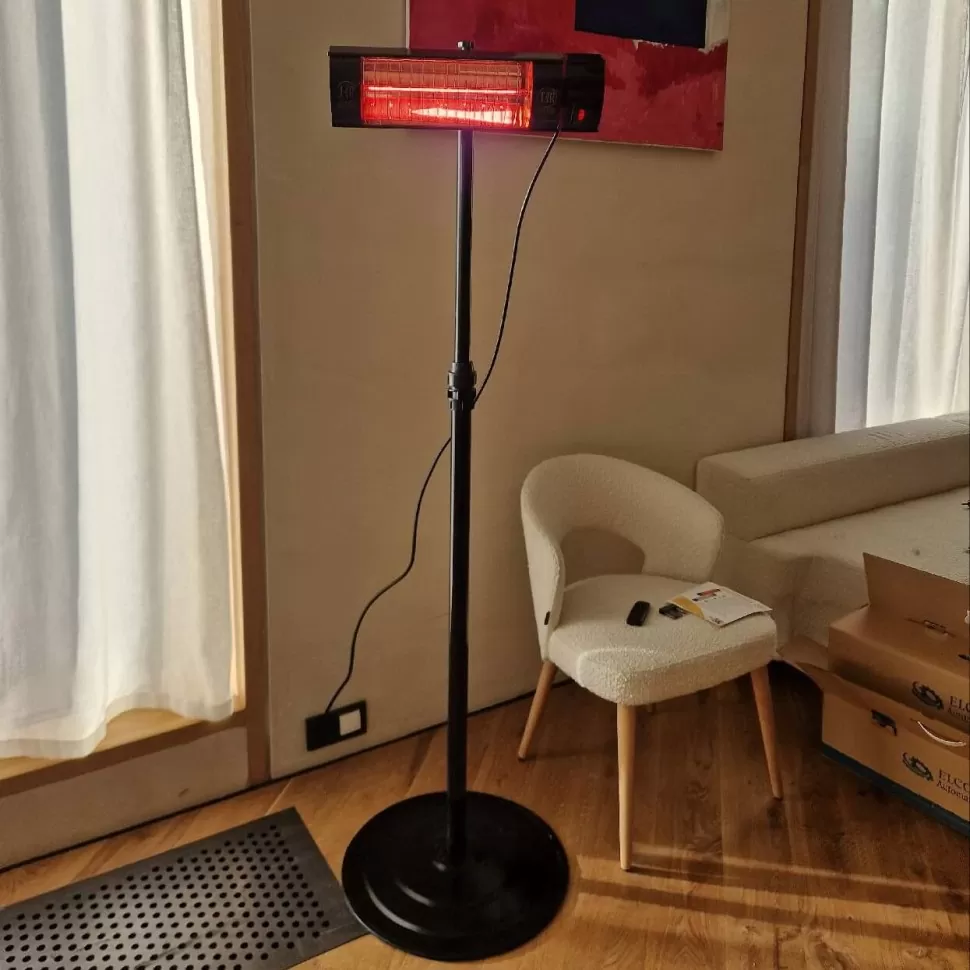 Этот инфракрасный электрообогреватель предназначен для обогрева различных зон как на открытом воздухе, так и на террасах, верандах, в беседках, кафе, ресторанах и в других местах, где есть доступ к электроэнергии.