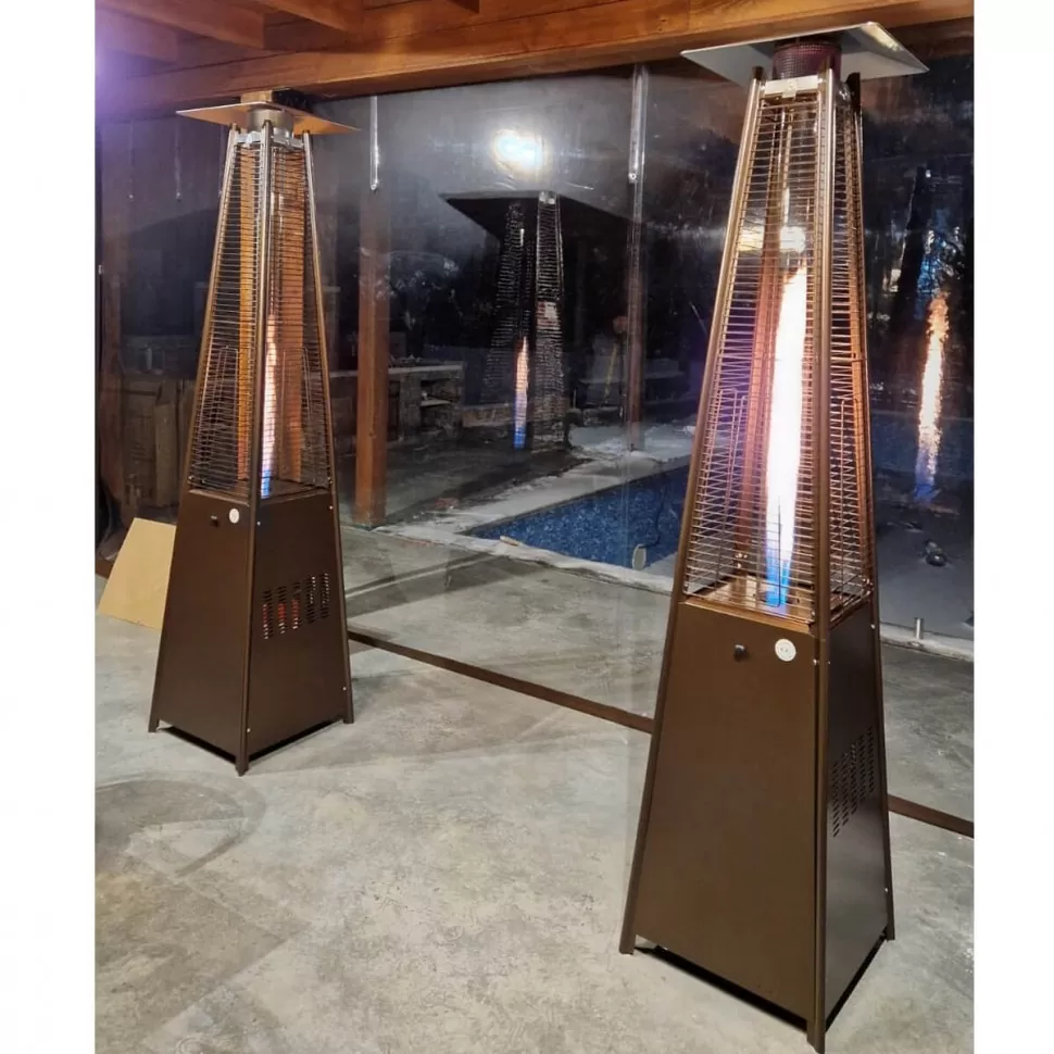 Благодаря пирамидальному корпусу этот обогреватель эффективно повышает температуру воздуха в диаметре пяти метров вокруг себя.