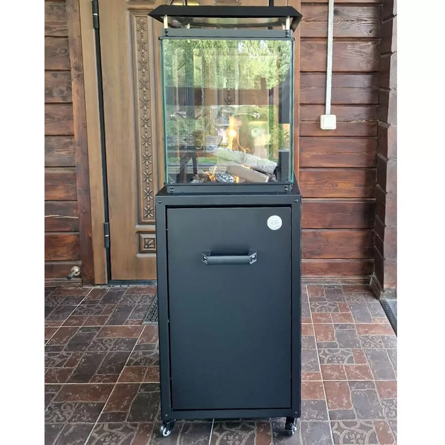 Уличный газовый обогреватель WWT 13M Black. Газовый нагреватель WWT 13M Black выполнен в стиле камина с эффектом живого пламени и муляжа дров и идеально подойдет, как для уличного кафе и ресторана, так и для веранды и террасы загородного дома. Дизайн обогревателя выглядит привлекательно сам по себе, а в сумерках он еще и создает особую, романтическую атмосферу, благодаря огню и тлению дров. Особый эффект придают камни вулканической породы, которые засыпаются вокруг горелки. Для равномерного распределения тепла вокруг обогревателя, газовый обогреватель WWT 13M оборудован отражателем.