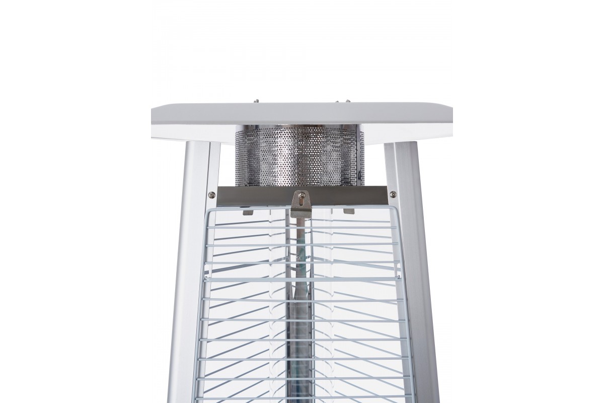 Уличный газовый обогреватель Ställeh Pyramid x3 представляет собой усеченную трехгранную пирамиду, на вершине которой установлена шляпка, выполняющая функцию рефлектора. Отражатель инфракрасных лучей изготовлен из цельного куска алюминия, что обеспечивает прибору надежность, долговечность, привлекательный вид и высокий КПД.
