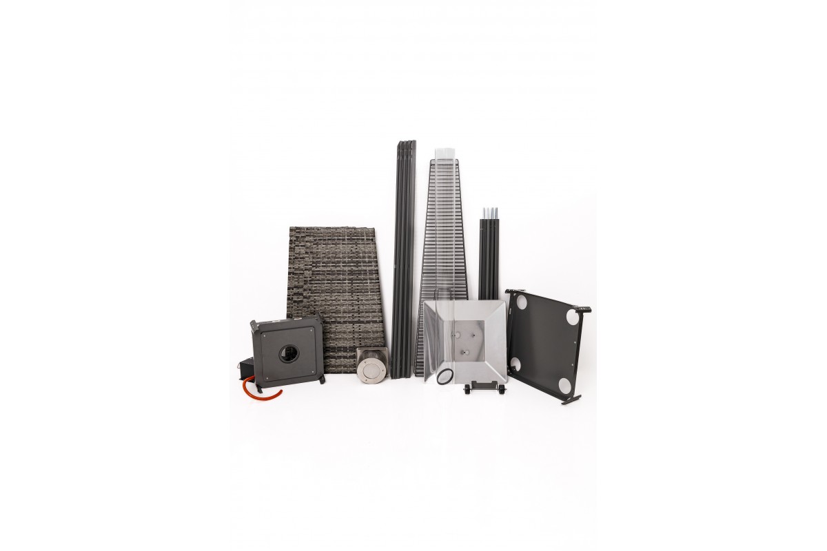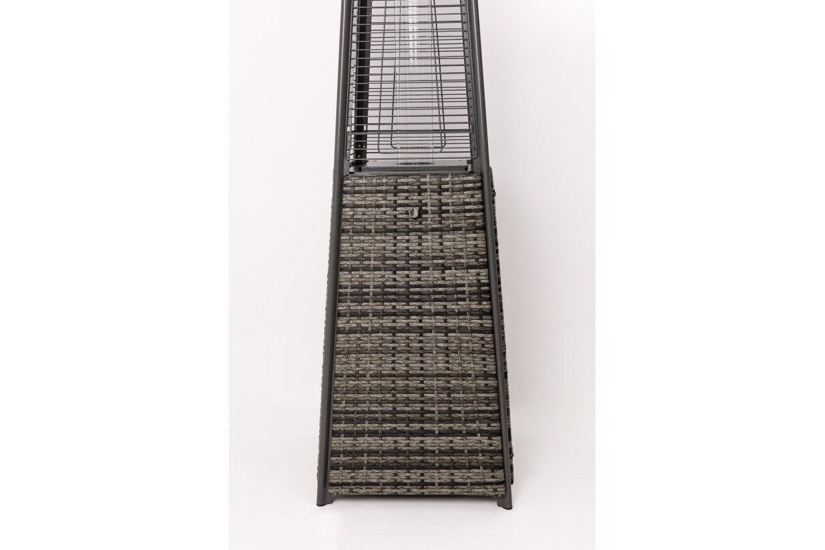 Уличный газовый обогреватель Ställeh Pyramid x4 представляет собой усеченную трехгранную пирамиду, на вершине которой установлена шляпка, выполняющая функцию рефлектора. Отражатель инфракрасных лучей изготовлен из цельного куска алюминия, что обеспечивает прибору надежность, долговечность, привлекательный вид и высокий КПД.