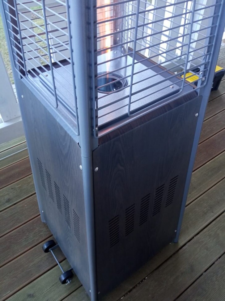 Оригинальный обогреватель WWT сразу получил широкое распространение среди любителей посидеть на открытом воздухе в прохладное время года. Он призван создавать тепло там, где его не хватает. Его легко прикатить на колесиках и установить в любое удобное место. Он занимает всего 54 см в основании. Еще одной положительной чертой является то, что он не требует подключения к электросетям, в следствии чего может быть установлен в любом удобном месте. Также уличный газовый обогреватель WWT 13I Wood имеет 3 степени защиты.
