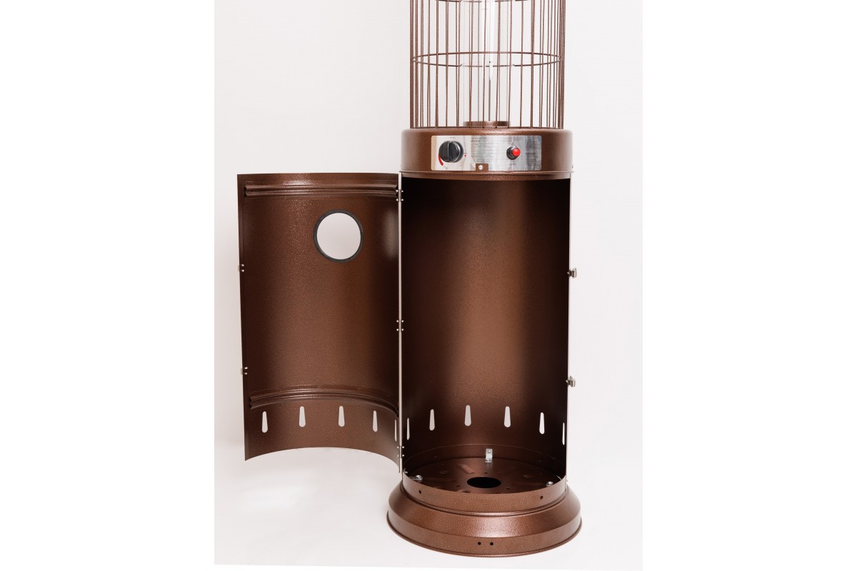 Уличный газовый обогреватель Ställeh Gracios Bronse – это очень производительное устройство, при помощи которого можно обогреть воздух и предметы в радиусе 3-х метров. Принцип работы обогревателя основан на нагреве окружающей его мебели и вещей, которые потом отдают тепло в воздух.