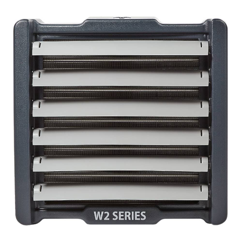 Тепловая мощность прибора от 59 до 103 кВт в зависимости от режима производительности и температуры теплоносителя. Максимальная рабочая температура теплоносителя 130°С при давлении 15 бар, что позволяет использовать в качестве теплоносителя пар и перегретую воду. Осевой вентилятор диаметром 450 мм создает воздушный поток длиной 25 метров и обеспечивает максимальную производительность до 4400 м³/ч.