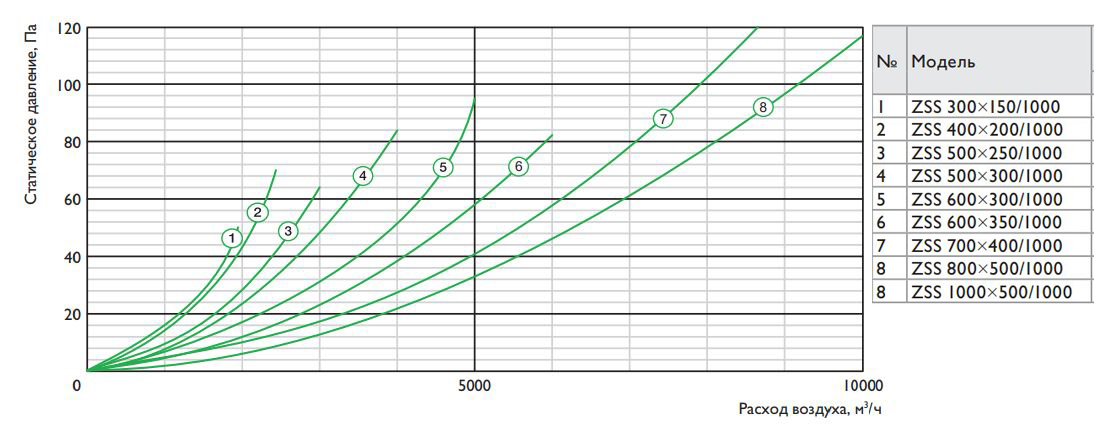 Перемещаемый воздух не должен содержать твердых, клеящихся или агрессивных примесей. Максимальная рабочая температура воздуха составляет 60 °С, максимально допустимая скорость — 10 м/с. Шумоглушители изготавливаются из оцинкованной стали с поглощающим материалом. В пластине 2 слоя: верхний — минеральная вата толщиной 50 мм, плотностью 14 кг/м3, нижний — синтетический нетканый материал «САУНТЕК» плотностью 1,5 кг/м3.