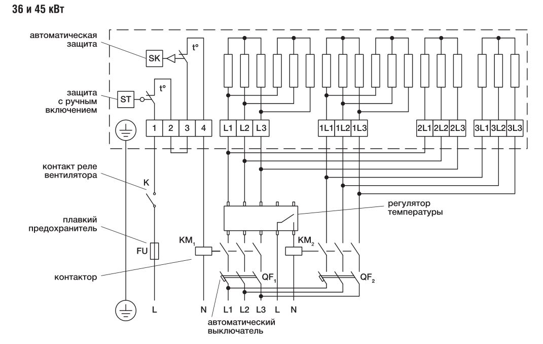 Нагреватель оборудован двухступенчатой защитой от перегрева. Реле первой ступени (с автоматическим возвратом в исходное положение) срабатывает, когда температура воздуха на выходе из нагревателя достигает 60 °С. Реле второй ступени (с ручным возвратом в исходное положение нажатием кнопки, расположенной на корпусе нагревателя) срабатывает при температуре 120 °С.