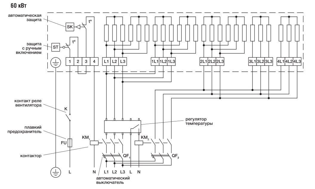 Нагреватель оборудован двухступенчатой защитой от перегрева. Реле первой ступени (с автоматическим возвратом в исходное положение) срабатывает, когда температура воздуха на выходе из нагревателя достигает 60 °С. Реле второй ступени (с ручным возвратом в исходное положение нажатием кнопки, расположенной на корпусе нагревателя) срабатывает при температуре 120 °С.