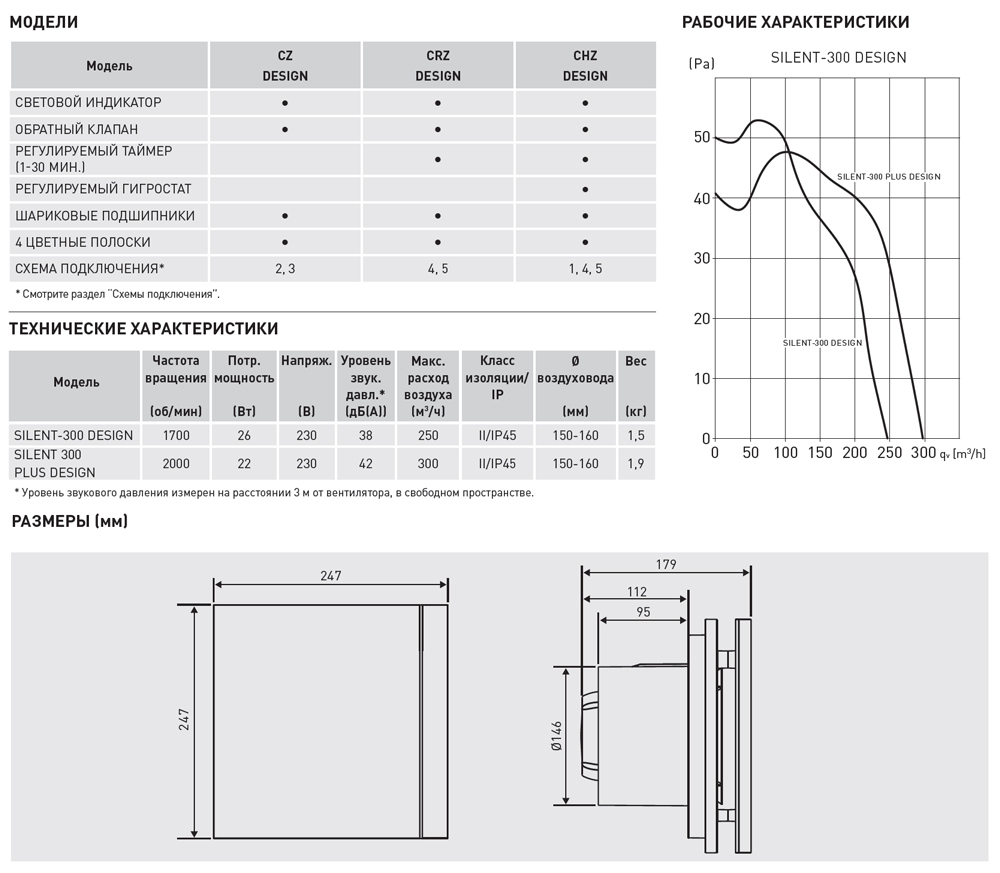 Вентиляторы имеют II класс электробезопасности, класс защиты IP45 и рабочую температуру воздуха от 0°С до +40°С.
