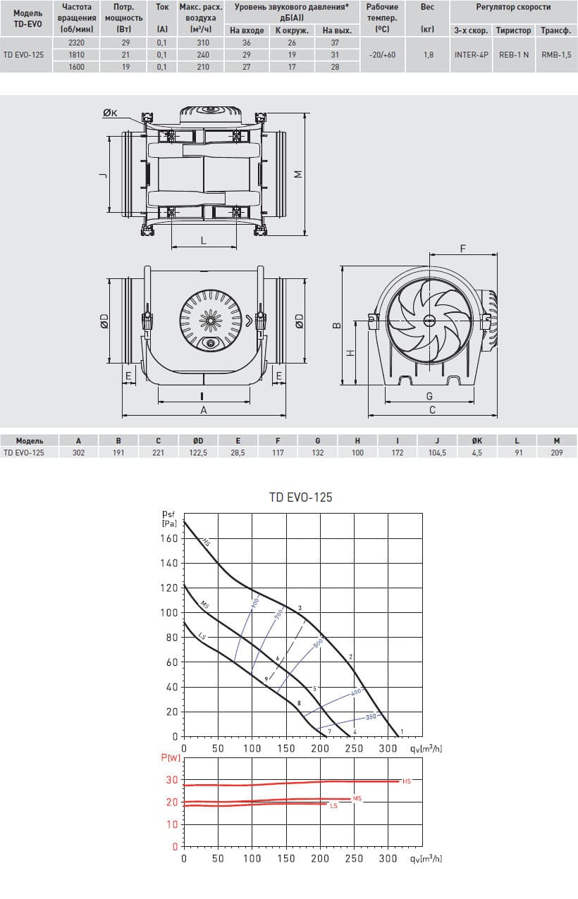 Вентиляторы имеют возможность регулирования скорости напряжением. Класс защиты IP44, класс изоляции F.