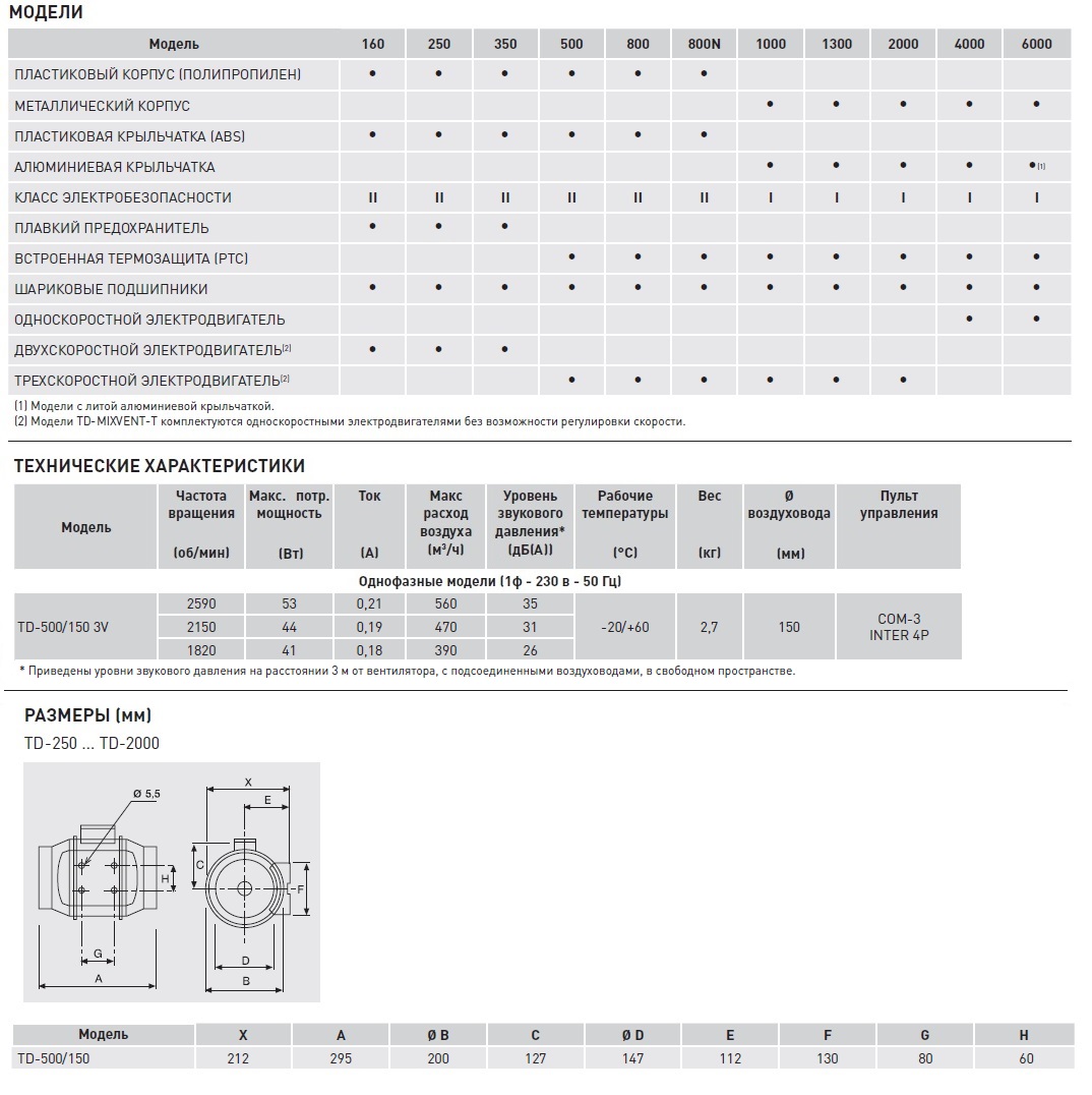 Модели 160 – 2000: Класс защиты IP44, класс изоляции B, с шариковыми подшипниками. Параметры электропитания: 1ф - 230 В - 50 Гц Вентиляторы оснащаются однофазными двухскоростными электродвигателями, со встроенной защитой от перегрева. Однофазные вентиляторы имеют возможность регулирования скорости напряжением. Вентилятор предназначен для использования в системах вентиляции и должен применяться в среде обычного, чистого воздуха, без каких-либо примесей. Не используйте данный вентилятор во взрывоопасной и коррозийной среде.