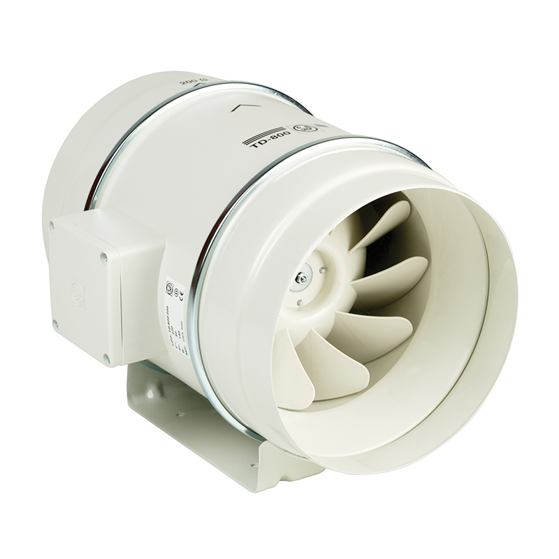 Канальные вентиляторы TD 800/200 T изготавливаются из высококачественного пластика и комплектуются высокоэффективными крыльчатками с диагональными лопатками.