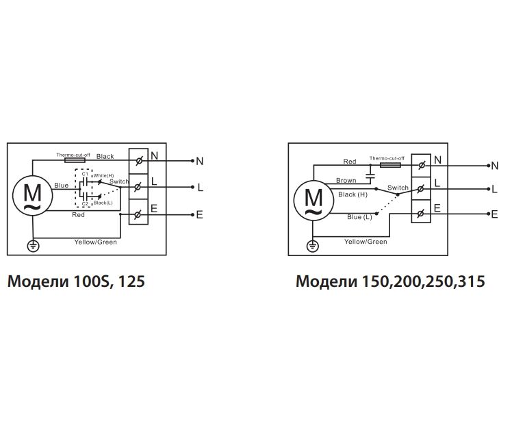 - Регулировка скорости. Управление двухскоростным двигателем осуществляется при помощи внешнего переключателя скоростей.