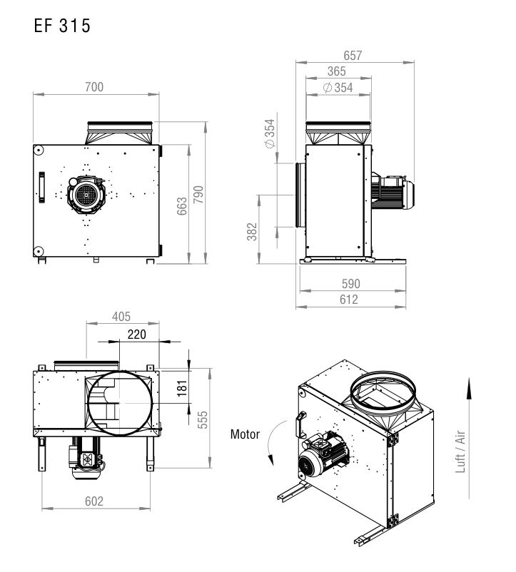 Кроме того, корпус вентилятора имеет специальную форму для сбора жира и слива, а также кронштейны для надежного монтажа. Возможны 3 положения патрубка, а конструкция корпуса позволяет организовать горизонтальный выброс воздуха.