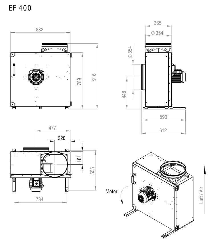 Кроме того, корпус вентилятора имеет специальную форму для сбора жира и слива, а также кронштейны для надежного монтажа. Возможны 3 положения патрубка, а конструкция корпуса позволяет организовать горизонтальный выброс воздуха.