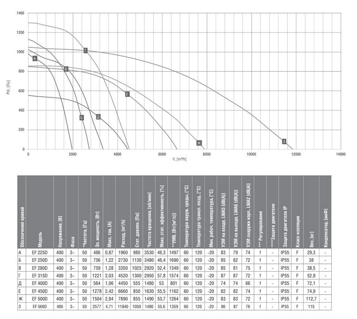 - Высокоэффективная крыльчатка с назад загнутыми лопатками.