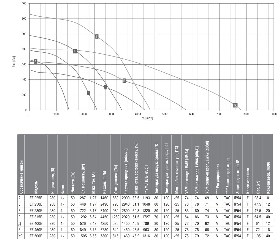 - Высокоэффективная крыльчатка с назад загнутыми лопатками.