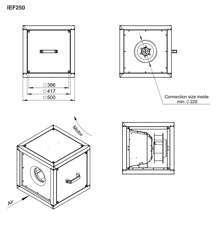 Корпус имеет специальную форму поддона, которая позволяет собирать небольшие количества конденсата или жира. Есть возможность изменения конструкции вентилятора перемещением боковых панелей.