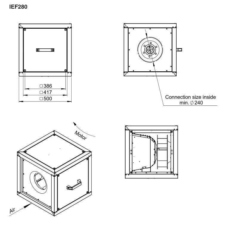 Корпус имеет специальную форму поддона, которая позволяет собирать небольшие количества конденсата или жира. Есть возможность изменения конструкции вентилятора перемещением боковых панелей.