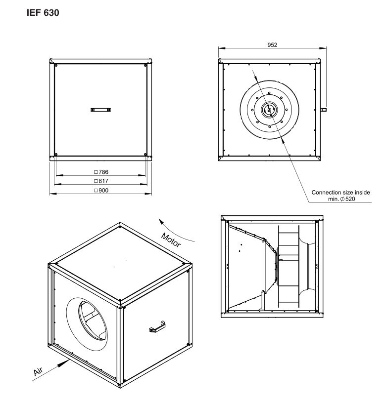 Корпус имеет специальную форму поддона, которая позволяет собирать небольшие количества конденсата или жира. Есть возможность изменения конструкции вентилятора перемещением боковых панелей.