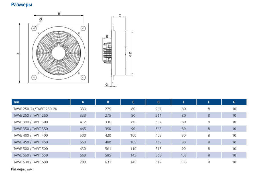 Корпус и крыльчатка изготовлены из листовой стали с электростатическим порошковым покрытием. Имеется защитная решетка с идентичным покрытием.