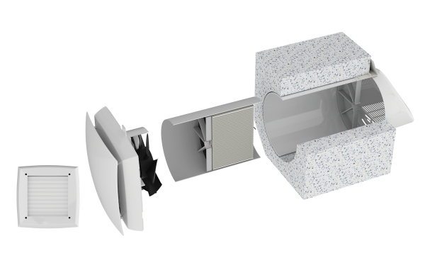 Приточно-вытяжная установка работает попеременно на приток и вытяжку циклично по 65 секунд. Производительности достаточно для помещений площадью до 30 м2.