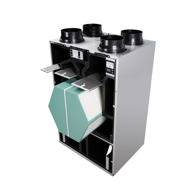• Рекуперация энергии: блок оснащен теплообменником, который может забирать тепло вытяжного воздуха и затем передавать его приточному воздуху, эта функция значительно снижает потери энергии.