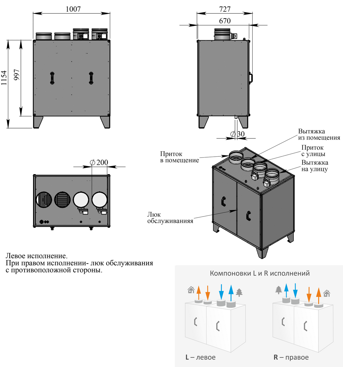 - Алюминиевый противоточный рекуператор (с системой защиты от замерзания, эффективная работа до -35°С).