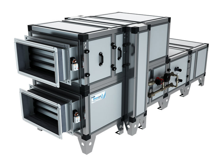 - Водяной нагреватель со смесительным узлом с 2-х или 3-х ходовым клапаном.